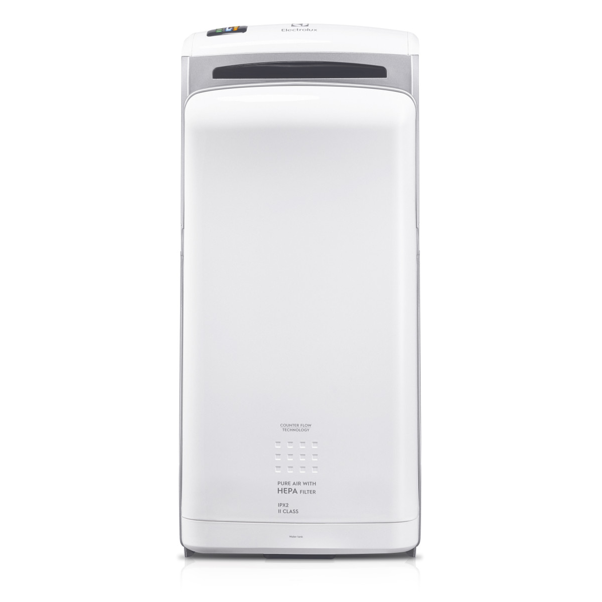В модели EHDA/HPF-1200W реализована технология двустороннего обдува Counter Flow, представляющая собой особую систему отверстий сушильного отсека, которая позволяет сушить руки одновременно с двух сторон мощными потоками теплого воздуха. Использование этой технологии делает процесс сушки рук более удобным, а помещение – чистым, поскольку вода, сдуваемая с рук в виде капель и брызг, попадает на дно сушильного отсека и стекает в специальную емкость – контейнер. Данный контейнер, расположенный на нижней стороне прибора, легко снимается и осушается.