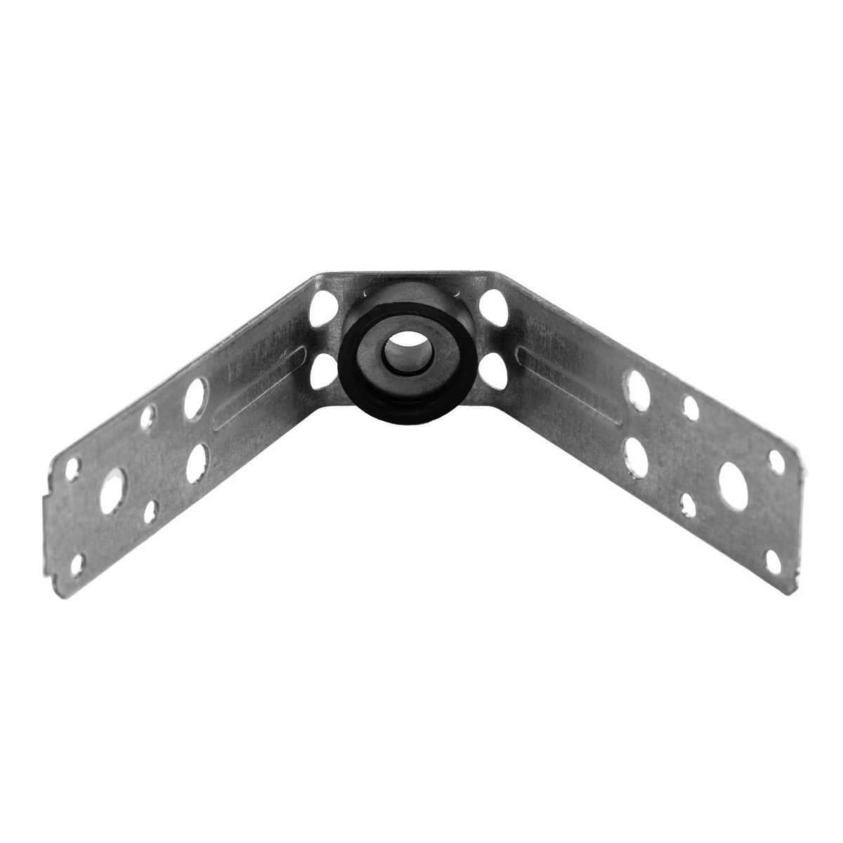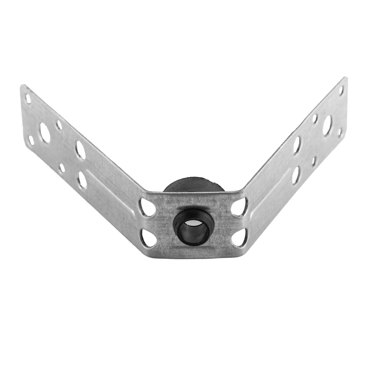 V-образный кронштейн с виброизолятором под среднюю нагрузку (до 230 кг) предназначен для монтажа воздуховодов. Крепеж изготовлен из оцинкованной стали с защитным слоем покрытия 8-10 микрон и резиновым виброгасителем, который предохраняет резьбовые шпильки от соприкосновения с элементами вентиляции, что значительно снижает передачу вибрации и шума. Крепление производится саморезами или заклепками к воздуховоду, могут крепиться непосредственно на потолок.